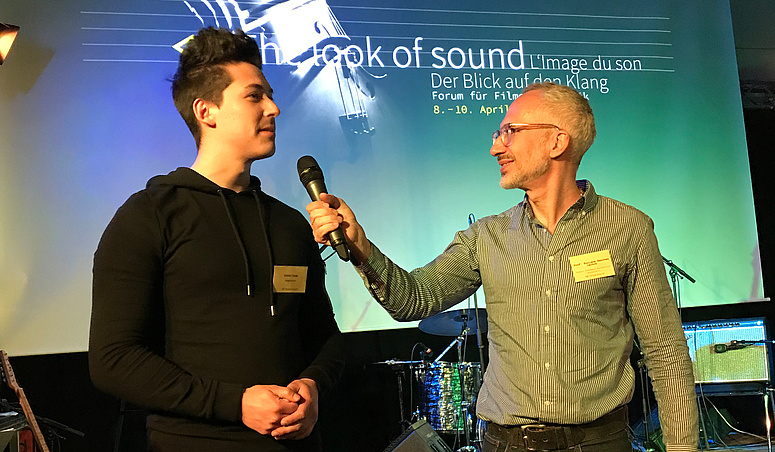 Umrahmt von Vorführungen professioneller TV-Musikprojekte und zeigten IMM-Student Paul Schön seine inszenierte Visualisierung eines Kammermusikwerks von Poulenc sowie IMM-Student Dino Conza einen schwungvoll in Szene gesetzten Musikclip, den er mit der Kölner Band Helga Weiß gedreht hat.