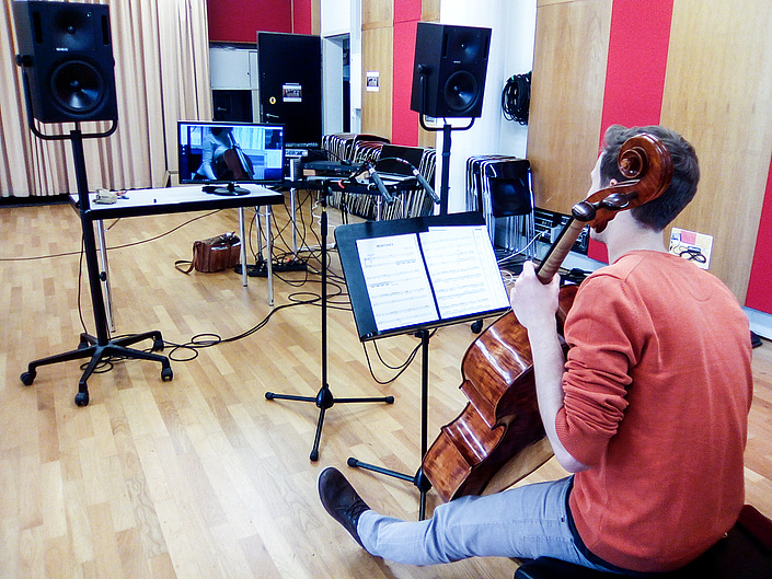 IMM-Service-Ingenieur <link internal-link internal link in current>Peter Dombrowski konnte diese in der vergangenen Woche gemeinsam mit den IMM-Studenten Ben Winkler, Anna Sachs und Tobias Kemper erstmalig an einer deutschen Musikhochschule erfolgreich testen.
