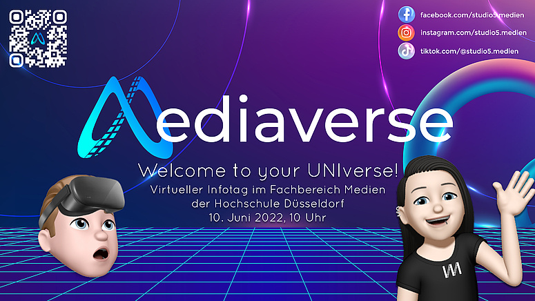 Besonders im Fokus steht hierbei der Studiengang Ton und Bild, den wir gemeinsam mit der Hochschule Düsseldorf anbieten. Daher ist auch das IMM mit einer virtuellen Führung durch unsere Studios mit dabei. Zur Anmeldung und zu allen Infos geht es hier: https://medien.hs-duesseldorf.de/studio5