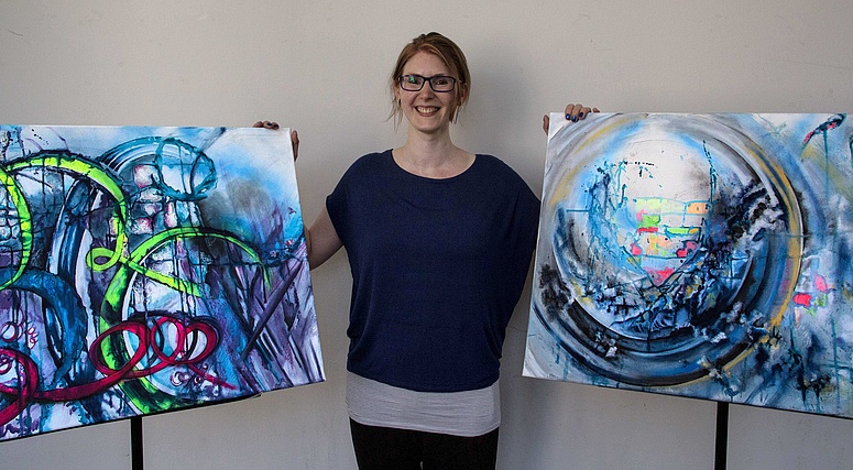 [V.H.]: In meiner Bachelorthesis Auditive Repetition im Techno und in der Waschmaschine im Kontext visueller Entsprechungen habe ich mich mit Repetition in Bezug auf Klang und Musik beschäftigt. Die Waschmaschine als ein Trance-förderndes, technisches Objekt verhält sich für mich mit ihrer gleichförmigen, rhythmischen Repetition ähnlich wie loopbasierte, repetitive Anteile im Minimal Techno und so wollte ich beides zusammenbringen. Im dazugehörigen Bachelorprojekt "Somewhere between Techno und Waschmaschine" habe ich mit Waschmaschinenklängen gearbeitet und die daraus entstandene elektronische Musik mit zwei Malereien in Form eines Kurzfilms verknüpft. Außerdem habe ich mich in meiner Bachelorthesis in Form einer umfassenden Recherche mit musischen, künstlerischen und ethnologischen Perspektiven in Bezug auf auditive Repetition auseinander gesetzt. In dem Zusammenhang habe ich mich u.a. mit Minimal Music der Komponisten Steve Reich und La Monte Young sowie mit der Musik afrikanischer Völker und ihrer Bedeutung hinsichtlich Rhythmik und Trance beschäftigt.