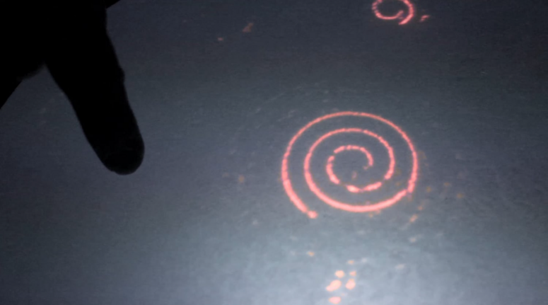Da die Ausstellung einen Monat lang dauern wird, muss die Stabilität des Systems verbessert werden. Aber auch inhaltliche Veränderungen sollen vorgenommen werden. Bei der Ausstellung Visual Music Studies 2017 in der Filmwerkstatt Düsseldorf, war die Installation nur an einem Abend zu sehen, die Menge der Spuren, welche die Spiralen hinterließen, war an diese kurze Dauer angepasst. Für die Ausstellung im Lutherturm besteht nun die Möglichkeit diese Ansammlung von Spiralfragmenten über einen ganzen Monat zu strecken. Eine technische Lösung dafür wird recherchiert und getestet. Alternativ wird das System an jedem Ausstellungstag neu gestartet. Ein zusätzlicher Effekt im Bild, auf den ich aus zeitlichen Gründen im Vertiefungsmodul verzichten musste, wird nun in die Arbeit einfließen. Das bisher unbewegte Gesamtbild, wird in sehr langsamem, kaum wahrnehmbarem Tempo rotieren, falls umsetzbar in Form einer Spirale.