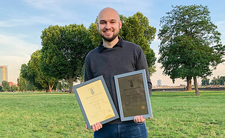 Die Student Recording Competition der Audio Engineering Society ist der weltweit wichtigste Wettbewerb für Studierende innerhalb der Audiobranche. IMM-Student Jannis Lehnert wurde nun mit der Produktion Electronic Dance Symphony in der Kategorie Immersive Audio mit einem Gold Award und mit der Mischung von Panikkopforchester in der Kategorie Modern Studio Recording & Electronic Music mit einem Bronze Award ausgezeichnet.