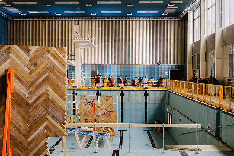 Die Installation feierte im Rahmen der Ausstellungseröffnung Sorge um den Bestand - Zehn Strategien für die Architektur im Viktoriabad des Bund Deutscher Architektinnen und Architekten ihre Premiere.