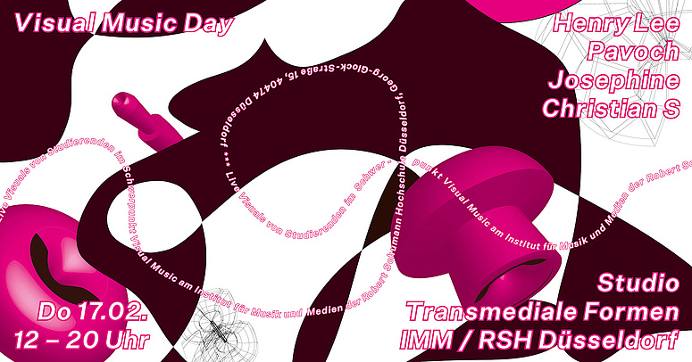 Die Studierenden im Schwerpunkt Visual Music entwickeln für diese Reihe in der Lehrveranstaltung Musikvisualisierung im stillen Bild bei Christian Schäfer die Plakatideen und in der Lehrveranstaltung Musikvisualisierung im bewegten Bild bei Falk Grieffenhagen die Übertragung der Entwürfe als Visuals in Raum.