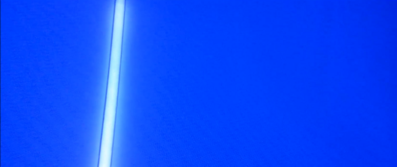 [J.C.]: Auf visueller Ebene habe ich mich erstmal gefragt, welche Stoffe es gibt, mit denen ich diese Rasterbildungen hinbekomme und habe nach längerer Recherche herausgefundenen, dass Tüll dafür geeignet ist. Durch räumliches Experimentieren habe ich versucht, mit verschiedenen Abständen diese Muster optisch zu erzeugen. Danach hatte ich die Idee, mit einer UV-Lampe ein blaues Licht auf dem durchsichtigen, hellen Stoff zu kreieren, um den Effekt deutlicher hervorzuheben. Dadurch bekam die Installation eine digitale Ästhetik, obwohl die Installation aus analogen Mitteln bestand. Auf klanglicher Ebene habe ich mich dann in einem langen Arbeitsprozess und mithilfe von Matthias Erdmann und Studierenden aus dem Masterstudiengang Klang und Realität, die eine Arduino-Werkstatt anbieten, entschieden, zwei Sinustöne übereinander zu legen, die in leicht unterschiedlicher Frequenz zueinander stehen. Dadurch wurde der Moiré Effekt, bei Bewegung des Betrachters, nicht nur auf optischer sondern auch auf klanglicher Ebene erzeugt und erfahrbar. Dafür haben wir Super Collider als Programm genutzt.