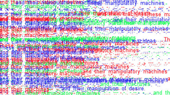 In Loutioreitaer, ersetzen aus der Biologie stammende Lindenmayer-Systeme rekursiv Vokalbuchstaben eines von künstlichen Stimmen gesprochenen Kittler-Goethe-Sekundärzitates. Dabei potenz… mehr