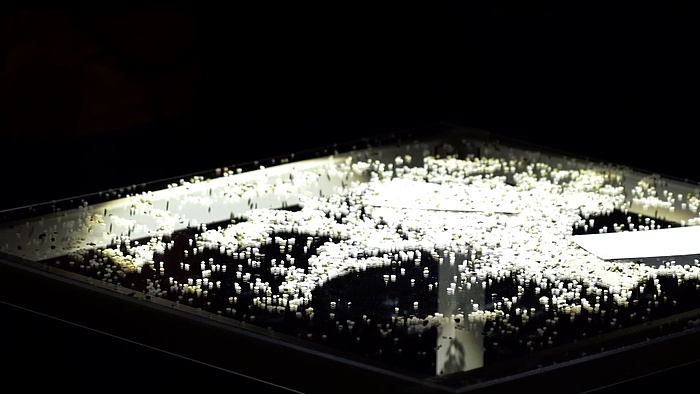 Die Installation mapping moments reflektiert den Arbeitsprozess in dem einzigartigen, audiovisuellen Studio Transmediale Formen des Instituts für Musik und Medien. Dabei spiegelt die Arbeit auf To… mehr