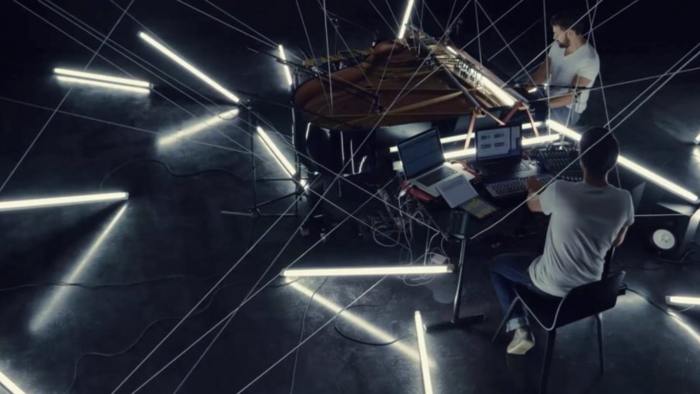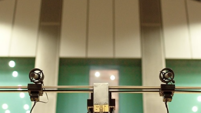 Doppelpendelmusik, eine audiovisuelle Installation von Johannes Leppkes, beschäftigt sich mit dem Sehen und Hören von Bewegung im Raum. mehr