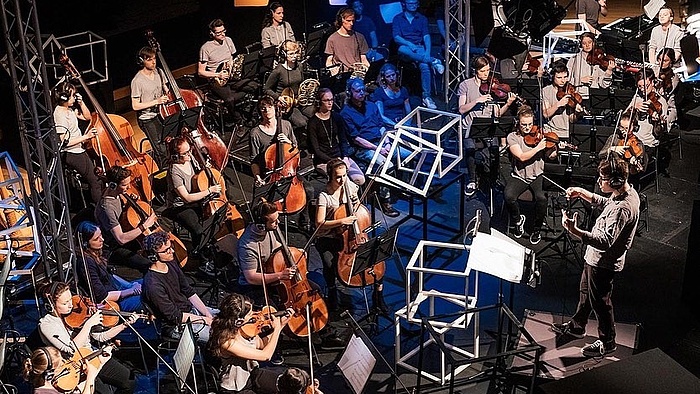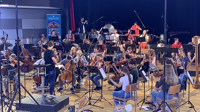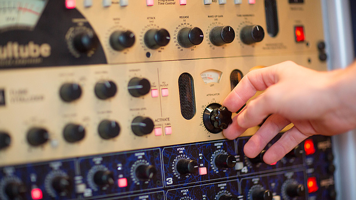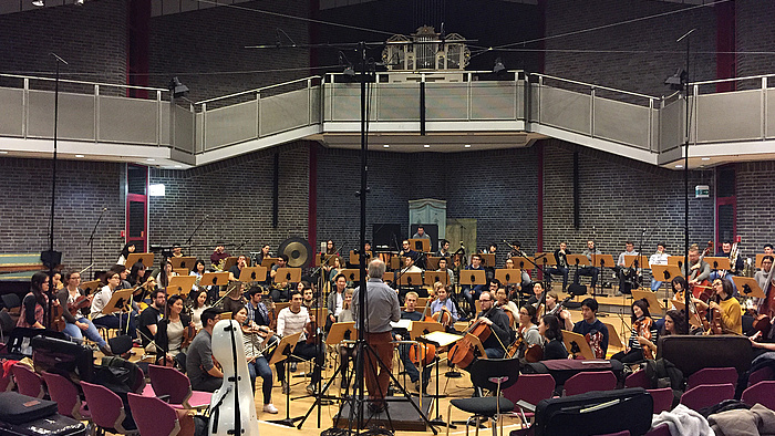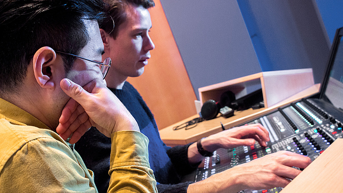Studierende waren für den Tonmitschnitt der Proben und Konzerte Willkommen in Deutschland - Entartete Musik mit den Toten Hosen und dem Sinfonieorchester verantwortlich. mehr