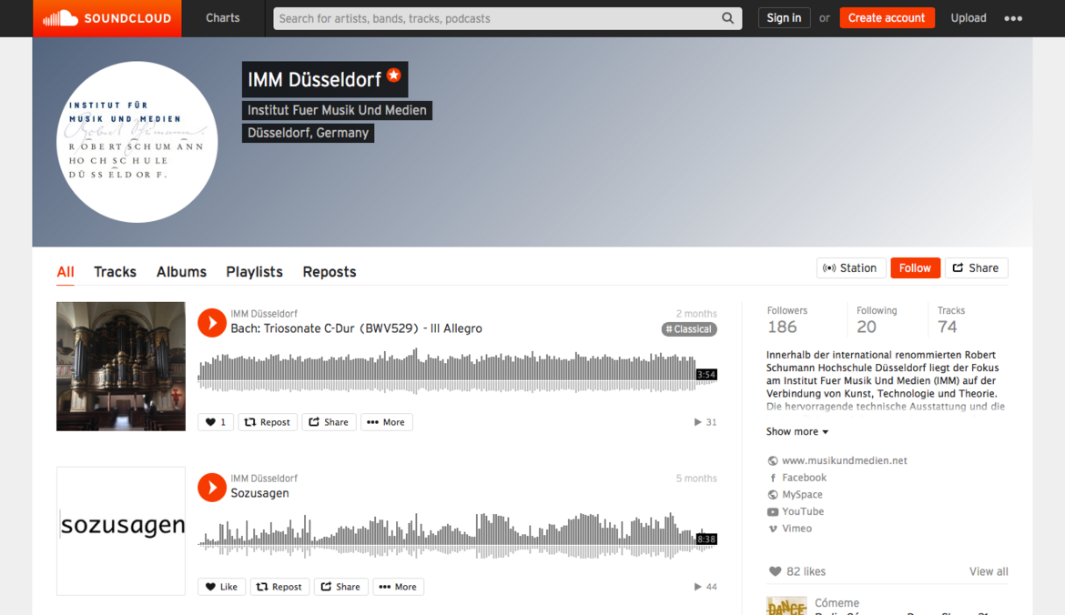 Weitere Projekte aus den Studienschwerpunkten Klassische Musikaufnahme, Medienkomposition, Musikinformatik, Musikproduktion, sowie Musik und Text der früheren Jahrgänge finden Sie auf unserem Vimeo-Channel unter https://soundcloud.com/musikundmedien.